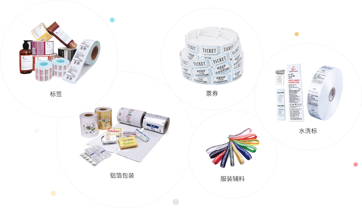 標(biāo)簽: 食品和飲品、 日化品、 醫(yī)藥、 工業(yè)標(biāo)簽和防偽標(biāo)簽、 電子設(shè)備和車(chē)用標(biāo)簽、 水洗標(biāo)