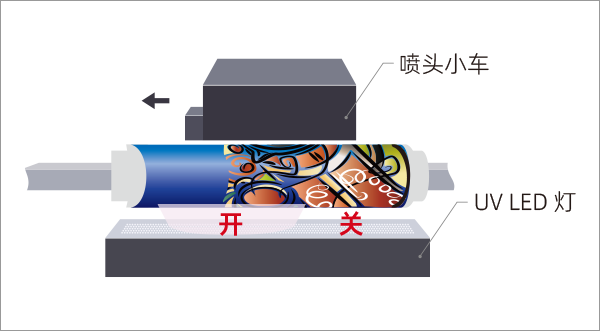 DOD壓電式灰度級(jí)噴頭, 自動(dòng)電壓及溫度控制 含多種UV燈控制的UV-LED 固化系統(tǒng) |