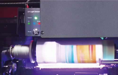 UV燈的照射區(qū)域被分為若干部分,每個(gè)部分都可被單獨(dú)地控制激活。此功能可實(shí)現(xiàn)同時(shí)打印白墨、彩墨和光油,并呈現(xiàn)完美的亮光效果。當(dāng)需要用光油打印時(shí),與以前的技術(shù)相比,打印生產(chǎn)率平均提高了50% 以上。