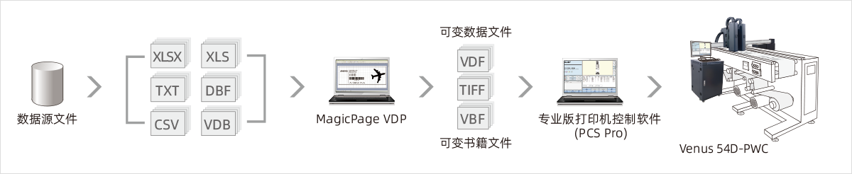 Venus 54D-PWC VDP 作業(yè)流程融合了多種先進(jìn)技術(shù),如色彩管理、RIP、內(nèi)容協(xié)作和輸出產(chǎn)量。高效、精簡的作業(yè)流程能夠使用戶實(shí)現(xiàn)高速、準(zhǔn)確和生動(dòng)鮮艷的可變數(shù)據(jù)印刷。