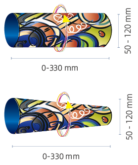雙旋彩TBDX 專為圓錐或圓柱形物體 360° 無縫高效旋轉(zhuǎn)直噴而設(shè)計,適用于各類圓杯、圓瓶、鐵罐和鋁罐等物體。