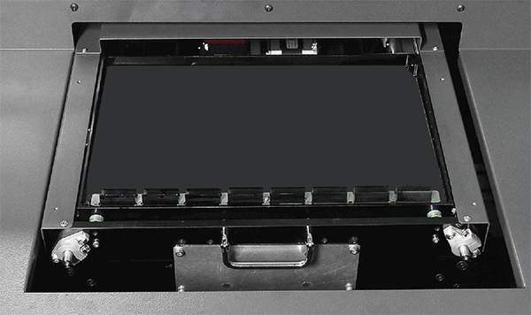CR33 直噴機(jī)利用打印平臺(tái)下方的墨水槽來(lái)接收透過(guò)面料的多余墨水。這種設(shè)計(jì)尤其適用于墨水覆蓋率高的打印,或在組織稀松的面料如網(wǎng)格旗幟布上打印。需要時(shí),可在墨水槽中加放海綿塊以更好地吸收多余墨水并方便維護(hù)。