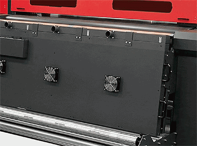 烘干系統(tǒng)(選配) 烘干系統(tǒng)由 IR 烘干模塊及墨霧抽吸裝置組成,可實現(xiàn)良好的墨水吸附,有效確保收卷前織物烘干。IR 烘干模塊性能穩(wěn)定,輻射效能高,可快速升溫,為您呈現(xiàn)均勻的加熱效果。墨霧抽吸裝置可優(yōu)化機器內(nèi)部環(huán)境,輕松實現(xiàn)清晰無濁的圖像打印。烘干系統(tǒng)可向外打開,方便查看織物印花效果。 |