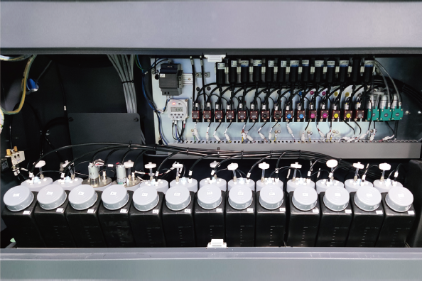 通過液位傳感器可監(jiān)測、控制主墨罐和副墨罐墨水液位。(右圖為11色機型)