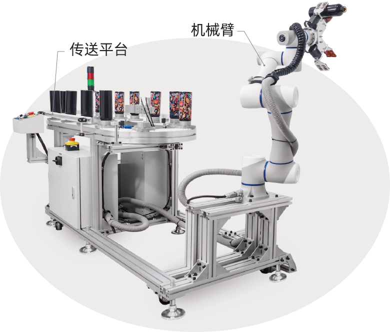 包括機(jī)械臂和傳送平臺(tái),其與旋彩? TBC旋轉(zhuǎn)打印機(jī)無(wú)縫協(xié)作,實(shí)現(xiàn)高靈活性、高精度和高效率的自動(dòng)上下料。