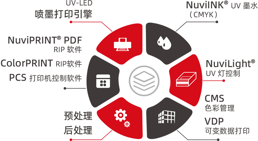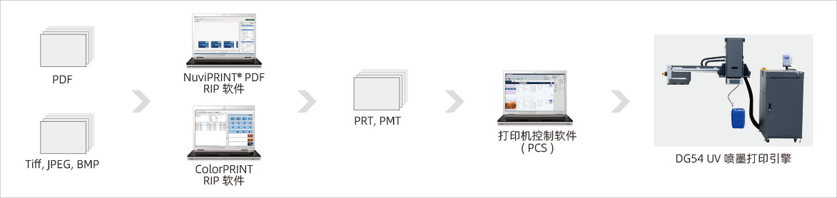 DG54噴墨打印引擎與NuviPRINT? PDF RIP軟件和打印機控制軟件無縫連接,實現(xiàn)PDF文件的高效打印。同時,DG54也支持Bitmap等圖像文件的完美輸出。增強的生產(chǎn)流程不僅執(zhí)行簡潔流程的線性化進程,也能獲得可預(yù)見的高質(zhì)量輸出。