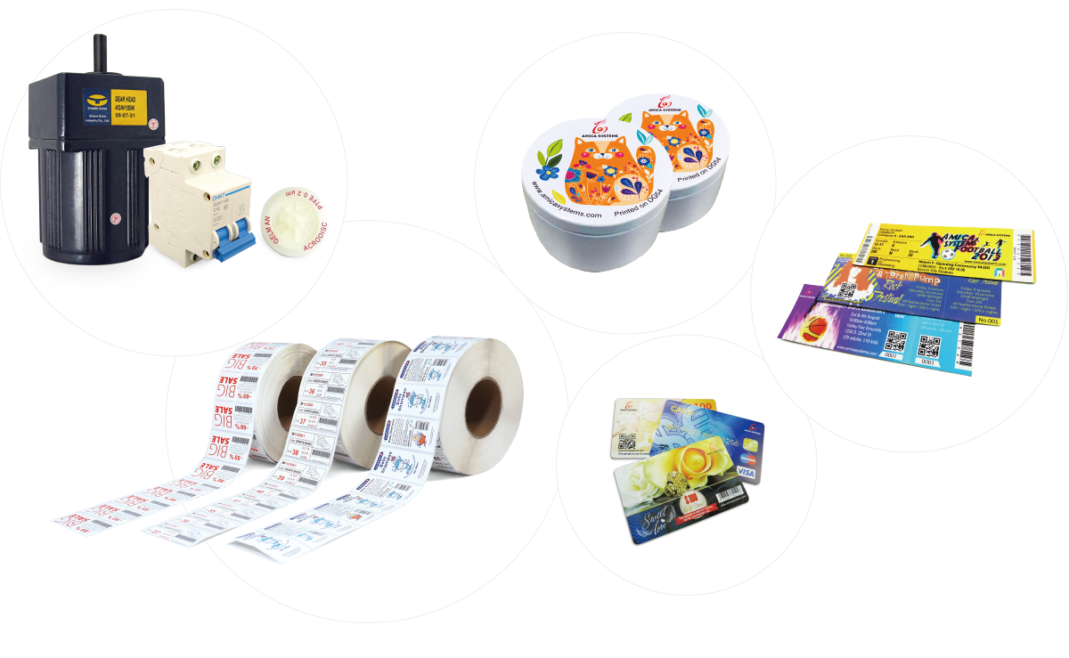 PVC、木材、玻璃、泡沫板、亞克力、金屬、膠合板、塑料等。 不干膠標(biāo)簽材料、銅版紙、膠版紙、合成紙、鋁箔等 |