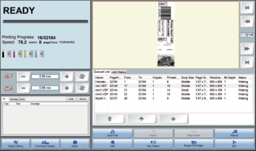 噴頭模塊的X軸采用電動(dòng)調(diào)節(jié),移動(dòng)精度高達(dá)0.1毫米,從而保證高速運(yùn)行時(shí),噴頭模塊精準(zhǔn)移動(dòng)至目標(biāo)位置,實(shí)現(xiàn)高質(zhì)量的可變數(shù)據(jù)打印。