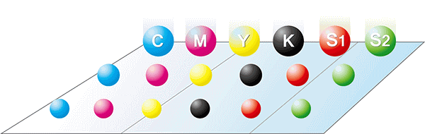 CMYK + SP1 + SP2,6 色