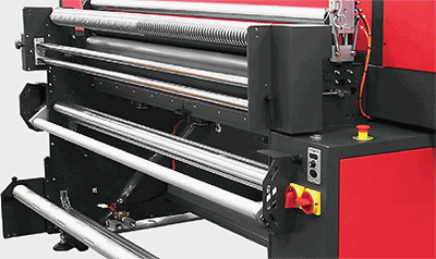 烘干系統(tǒng)(選配) 烘干系統(tǒng)由 IR 烘干模塊及墨霧抽吸裝置組成,可實現(xiàn)良好的墨水吸附,有效確保收卷前織物烘干。IR 烘干模塊性能穩(wěn)定,輻射效能高,可快速升溫,為您呈現(xiàn)均勻的加熱效果。墨霧抽吸裝置可優(yōu)化機器內(nèi)部環(huán)境,輕松實現(xiàn)清晰無濁的圖像打印。烘干系統(tǒng)可向外打開,方便查看織物印花效果。 |