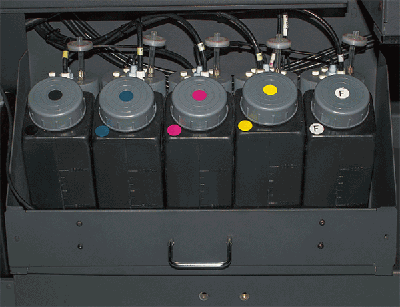 UV 可固化墨水,CMYK + 白墨 各色主墨罐容量均為1L