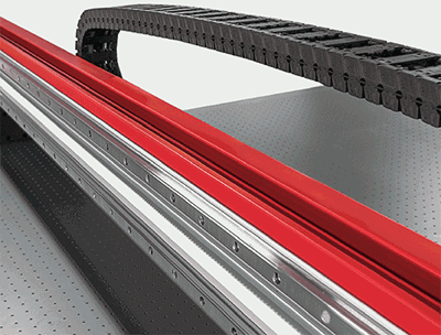 安裝有兩個導(dǎo)軌、光柵尺和伺服電機(jī)的穩(wěn)固的橫梁可以確保噴頭小車的穩(wěn)定運(yùn)動和準(zhǔn)確定位。 |