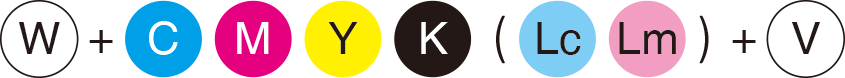 底油可與 CMYK/ CMYKLcLm 同時打印,增加不同材料上的墨水附著力。 |