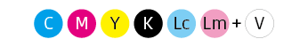10色墨水通道:CMYK,LcLm,OrGr,底油,白墨,光油,專色 |